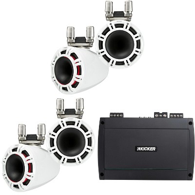 Kicker (2 Pair) 44KMTC9W 9" White Horn-Loaded Tower Speakers & 800 Watt Marine Amp with tube-clamp mounting