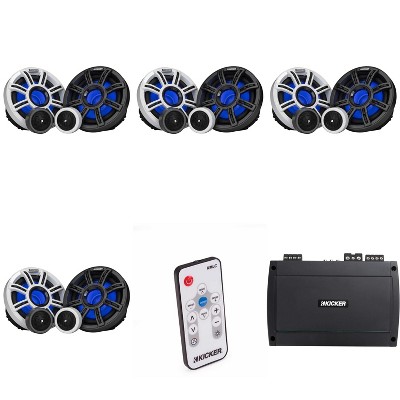 Kicker Premium Marine (4 Pair ) 6.5" Component Speaker and Amplifier bundle Includes LED Remote ( 51MSS654 & 48KXMA8004 )