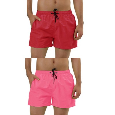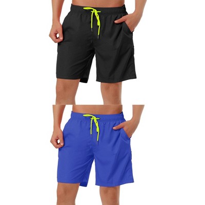 Lars Amadeus Men's Summer Beach Solid Color Mesh Lining Drawstring Waist Swim Shorts 2 Pack