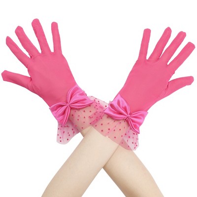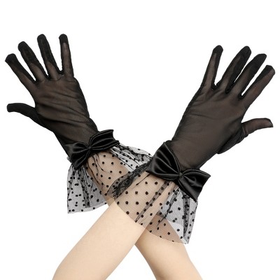 INSPIRE CHIC Women's Short Polka Dots Mesh Lace Gloves with Bow