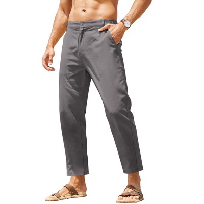 INSPIRE CHIC Men's Drawstring Waist Breathable Summer Linen Beach Pants