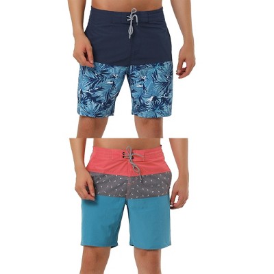 Lars Amadeus Men's Holiday Contrast Color Design Drawstring Waist Beach Board Shorts 2 Pack