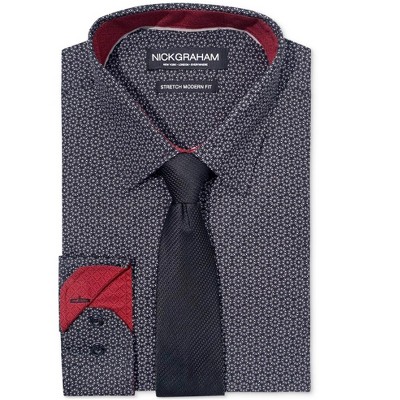 Nick Graham Mens Crossroads Squares Tie Set Button Down Dress Shirt