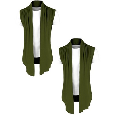 Lars Amadeus Men's Open Front Solid Ruffle Collar Cardigan Vest 2 Packs