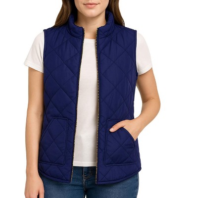 Allegra K Women's Stand Collar Lightweight Gilet Quilted Zip Puffer Vest