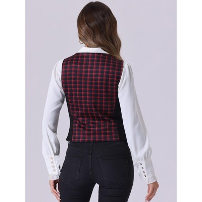 INSPIRE CHIC Women's Plaid Vintage Notched Lapel Collar Single Breasted Waistcoat Vest