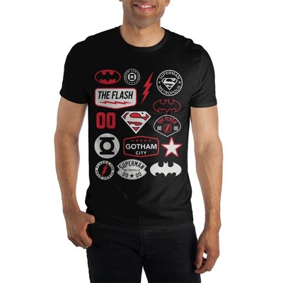 DC Comics The Flash Batman Superman Green Lantern Character Logo Men's Black Tee T-Shirt Shirt