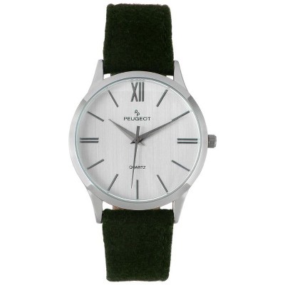 Peugeot Men's Round 40mm Steel Case with Green Wool/Leather Strap