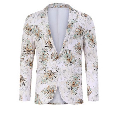 Men's Prited Blazer Jacket Long Sleeves Button V Neck Lapel Suit
