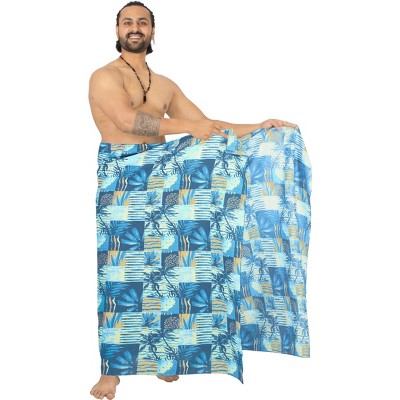 LA LEELA Men's Beach Sarong Cover Up Swimwear Wrap One Size Palm Tree Royal Blue