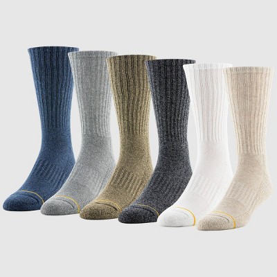 Signature Gold by GOLDTOE Men's Cotton Solid Short Crew Socks 6pk - Khaki/Wht/Charcoal/Olive/Gry/Peacoat 6-12.5