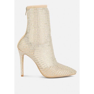 Fortunate Rhinestones Embellished Mesh Boots