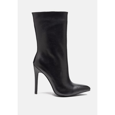 Allegra K Women's Glitter V-Shape Pointy Toe Back Zipper Block Heels Mid-Calf Western Boots