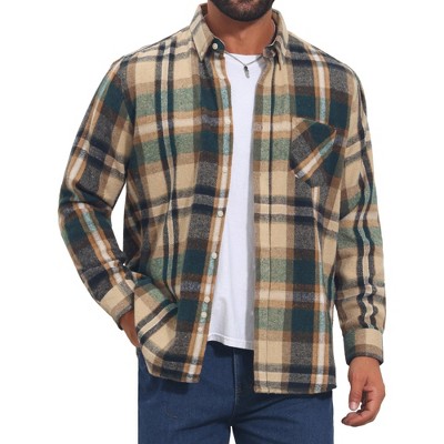 INSPIRE CHIC Men's Brushed Cotton Retro Long Sleeve Casual Plaid Flannel Shirt