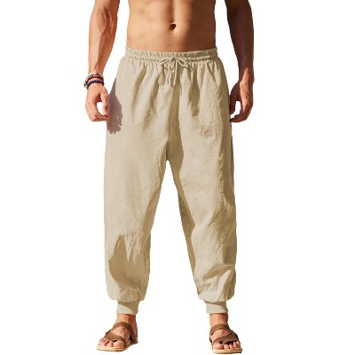 COOFANDY Men's Linen Harem Drawstring Pants Casual Elastic Waist Lightweight Trouser Summer Beach Yoga Pants