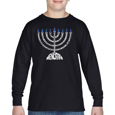 LA Pop Art Menorah - Boy's Word Art Long Sleeve T-shirt