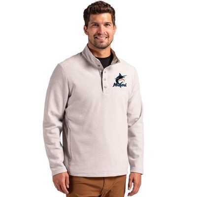 Miami Marlins Cutter & Buck Hunts Point Eco Textured Fleece Recycled Mens Snap Pullover