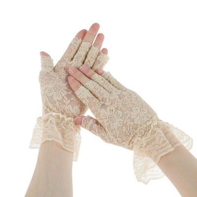 Unique Bargains Halloween Christmas Women's Floral Lace Sunblock Mittens 1 Pair