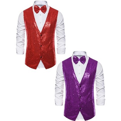 Lars Amadeus Men's Shiny Sequin Sleeveless Tuxedo Vest Set with Bow Tie 2 Packs
