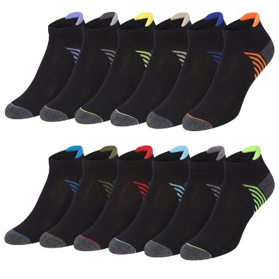 JAMES FIALLO Men's 12-Pairs Performance Monochrome Black Vibrant Toe and Heel Pops Good Feel Low Cut Sports Socks