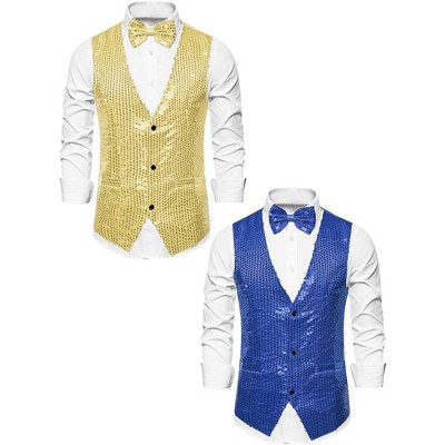 Lars Amadeus Men's Shiny Sequin Sleeveless Suit Vest Set with Bow Tie 2 Packs