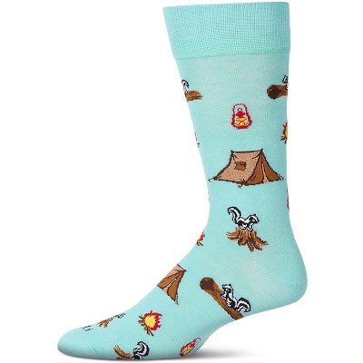 Memoi Men's "Stinky Campsite" Rayon Blend Novelty Crew Sock Capri Breeze 10-13