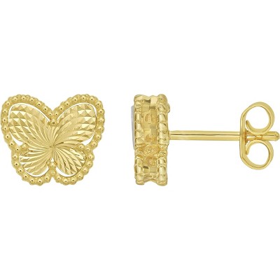 14k Yellow Gold 8mm Radiating Textured Butterfly Stud Earrings