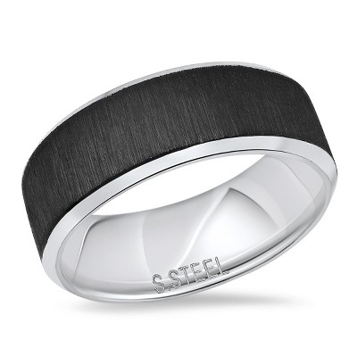 Steeltime Men's two tone black ip and stainless steel band ring ring black glittery film inlay. Size 9-12