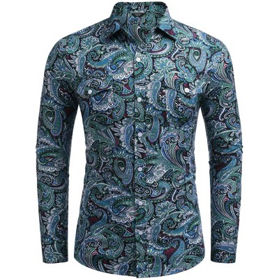COOFANDY Mens Paisley Printed Shirts Casual Long Sleeve Button Down Shirts Floral Dress Shirt with Pockets