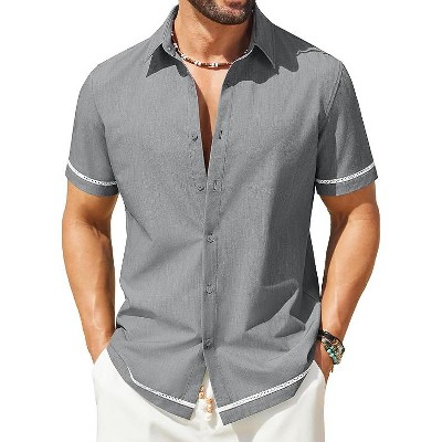 COOFANDY Button Down Shirt Short Sleeve Casual Shirts Linen Shirts