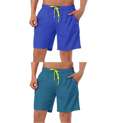 Lars Amadeus Men's Summer Beach Solid Color Mesh Lining Drawstring Waist Swim Shorts 2 Pack