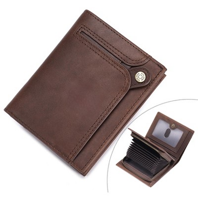 Men's Leather Wallet with RFID Blocking 2 ID Windows in Full Grain Crazy Horse Leather