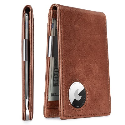 Narwey Genuine Leather AirTag Wallet with Money Clip - Mens Bifold Wallets Slim Front Pocket