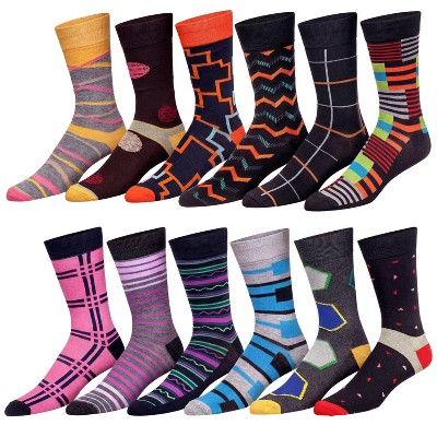 JAMES FIALLO Men's 12 Pairs Creative Unique Geometric Colorful Patterned Dress Socks for Men