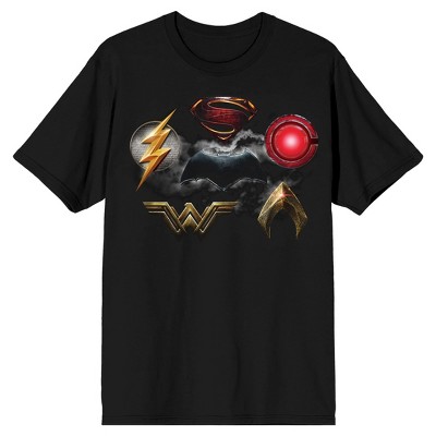 Justice League Movie Superhero Logos Men's Black T-shirt