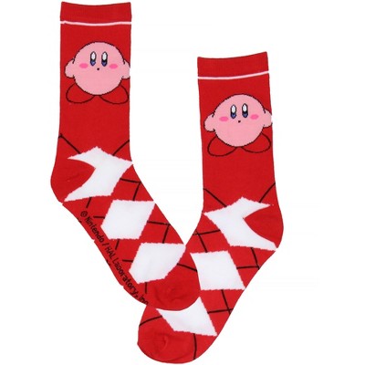 Nintendo Kirby Video Game Red Argyle Crew Socks For Men Women 1 Pair