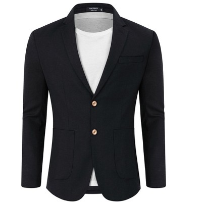 Clearlove Men's Linen Cotton Blend Two-Button Unstructured Blazer with Patch Pockets Relaxed Fit Sport Coat Business