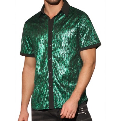 Lars Amadeus Men's Contrasting Color Short Sleeves Button Down Disco Party Sparkly Metallic Shirts