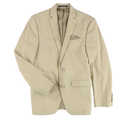 bar III Mens Notched Lapel Two Button Blazer Jacket, tan, 38 Regular
