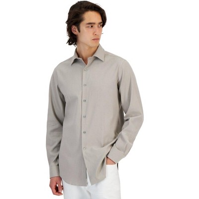 Alfani Mens Slub Button Down Dress Shirt, gray, 15"-15.5" Neck 34"-35" Sleeve
