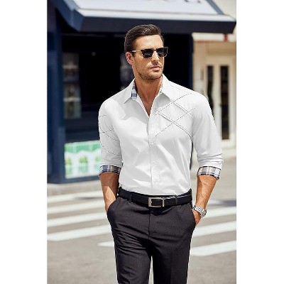 COOFANDY Men's Cotton Dress Shirts Long Sleeve Plaid Collar Shirt Slim Fit Casual Button Down Shirt