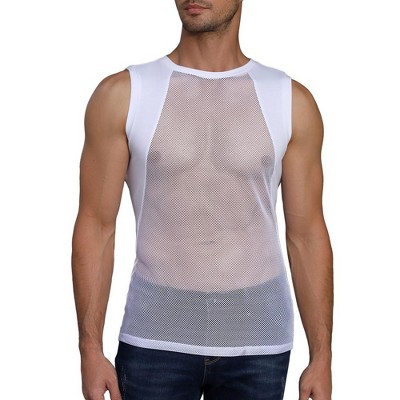 Men's Mesh Sheer Sport Tank Top See Through Sleeveless Tops Shirts for Nightclub Beach Tank Top Sleeveless Muscle Workout Crew Neck Tee Shirt
