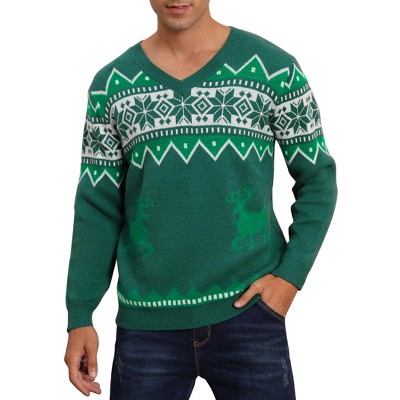 Clearlove Men's Christmas Sweaters Holiday Reindeer Snowflakes V Neck Jumpers