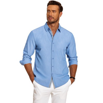 COOFANDY Men's Casual Button Down Shirt Long Sleeve Linen Chambray Shirt