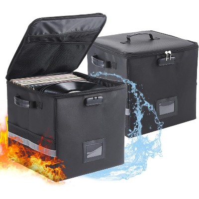 Fiberglass Vinyl Record Storage Boxes with Lock, Fireproof & Water-Resistant Record Holder with Lid & Handles, for 12-inch Vinyl Albums, 2 Pack