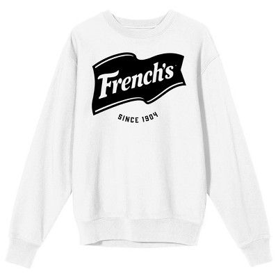 Men's French’s Long Sleeve - Black Logo Text, Small Neck hit logo text, Promotional Text on White