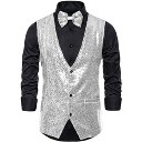 Lars Amadeus Men's Sparkle Sequin Sleeveless Waistcoat Set with Bow Tie 2 Packs