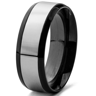 West Coast Jewelry Men's Brushed and Polished Grooved Edges Two Tone Steel Ring (8mm Wide)