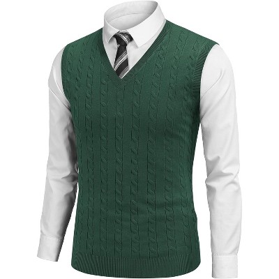 COOFANDY Men's Sweater Vest V Neck Slim Fit Cable Knitted Sleeveless Pullover Sweater