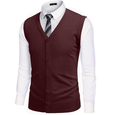 COOFANDY Men's Sweater Vest V Neck Casual Sleeveless Knitted Button Cardigan Vest
